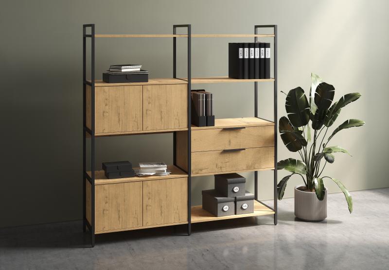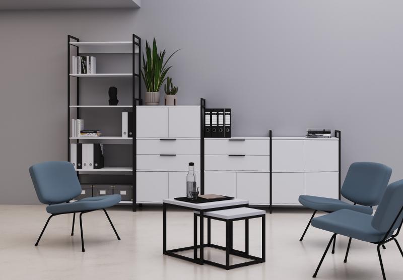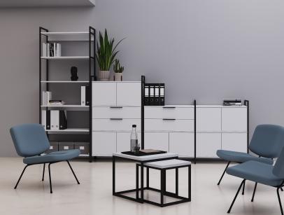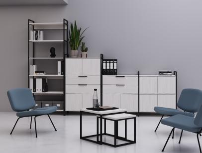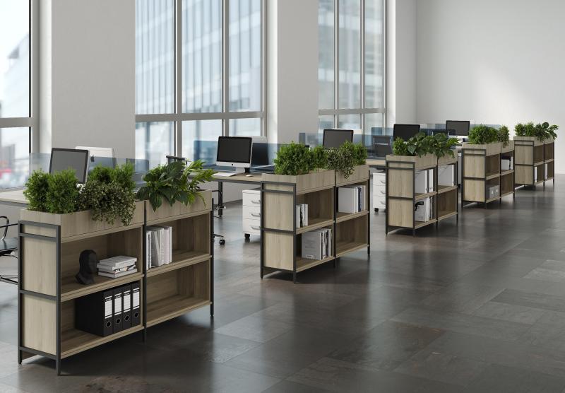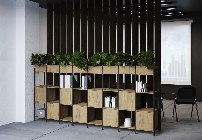 Коллекция CUBOS — это современная модульная система хранения, созданная на стыке минимализма и стиля лофт. Благодаря сочетанию строгого металлического каркаса и разнообразных фактур ЛДСП, стеллажи CUBOS становятся не просто мебелью, а архитектурным элементом офиса, позволяя эффективно зонировать пространство, сохраняя его лёгкость и открытость.